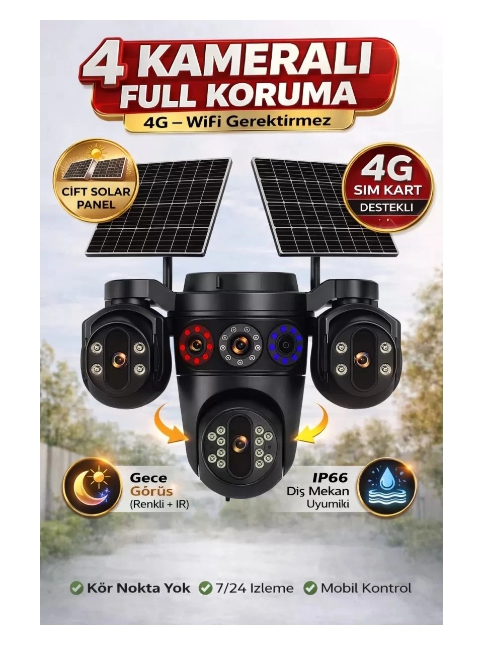 ? 4 Kameralı 4G Solar Akıllı Güvenlik Kamerası – Elektrik Yok, WiFi Yok… Güvenlik HER YERDE!