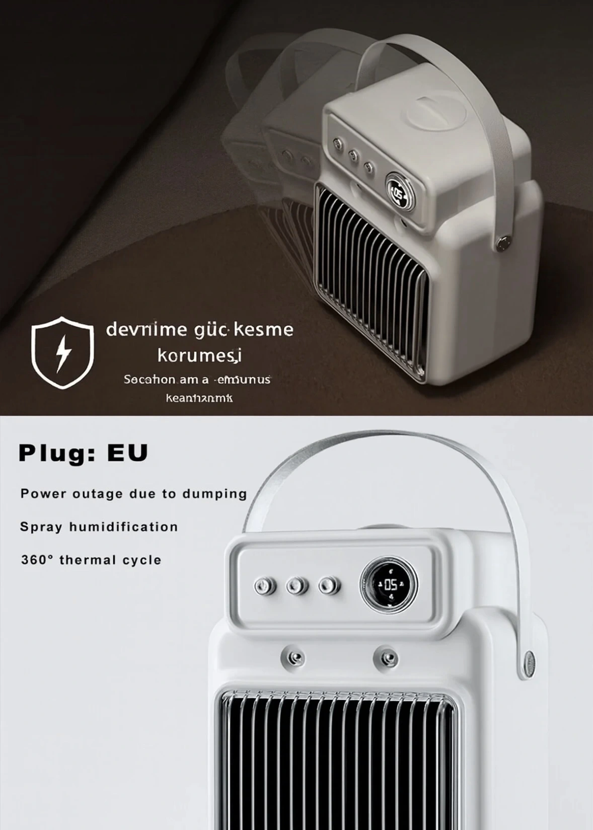 Taşınabilir ve şık tasarımı ile hem fonksiyonel hem de estetik bir çözüm sunar. Soğuk ve kuru havalara karşı akıllı bir adım atın; sıcak, dengeli ve sağlıklı bir iç mekân sizi bekliyor.