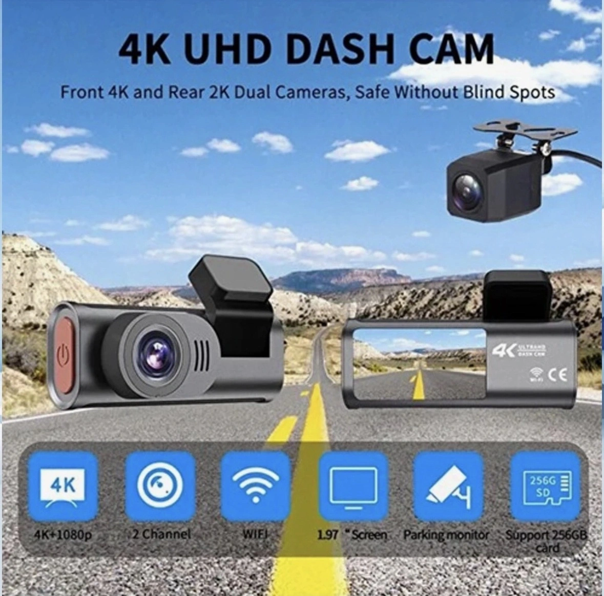 ? 4K HD Çift Lensli WiFi Araç Kamerası