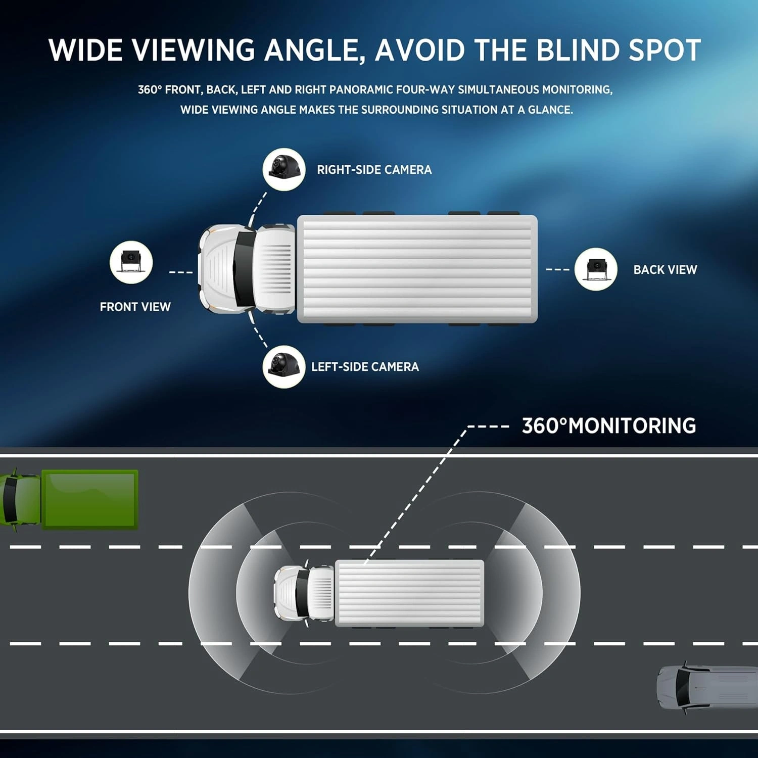10.36" Geniş Ekran • 360° Görüş • DVR Kayıt • 4 Kanallı HD Kamera
