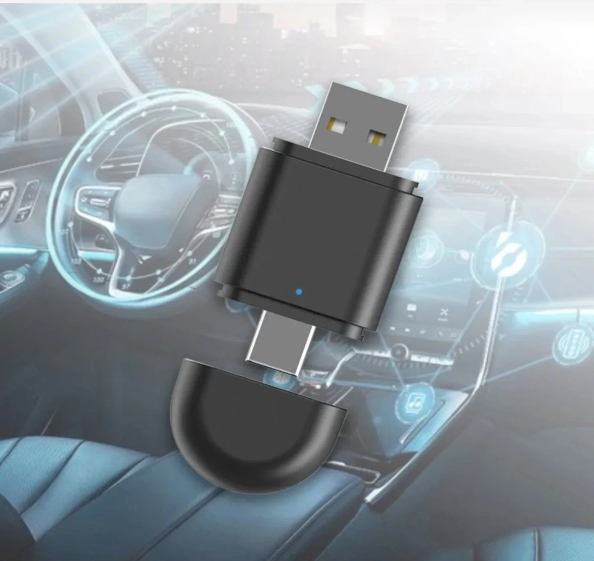 Mini boyutu sayesinde araç içinde yer kaplamaz; USB-A veya Type-C girişe kolayca takılır.
