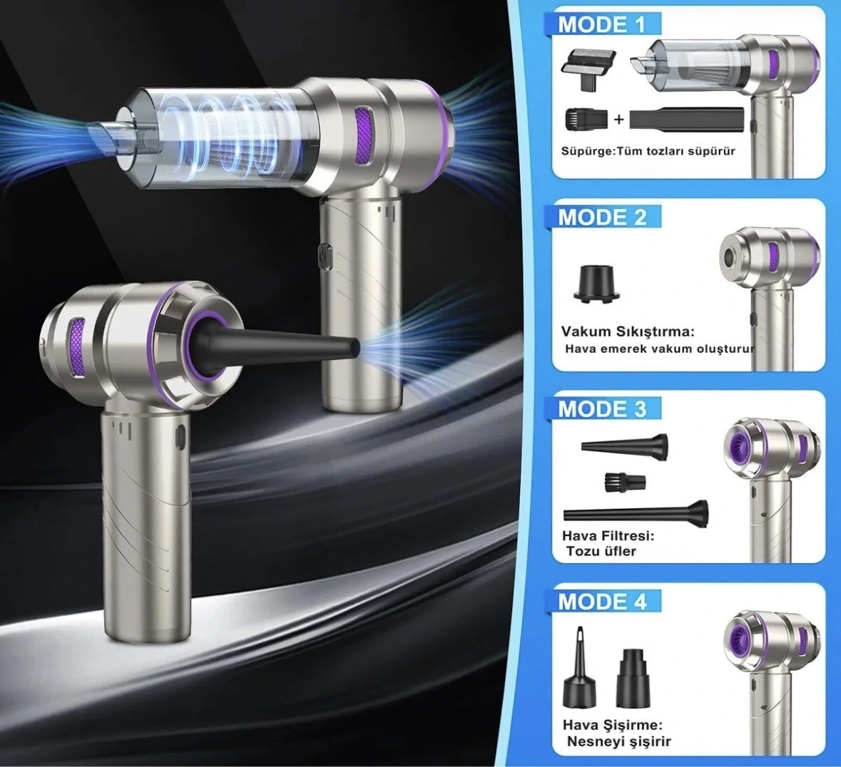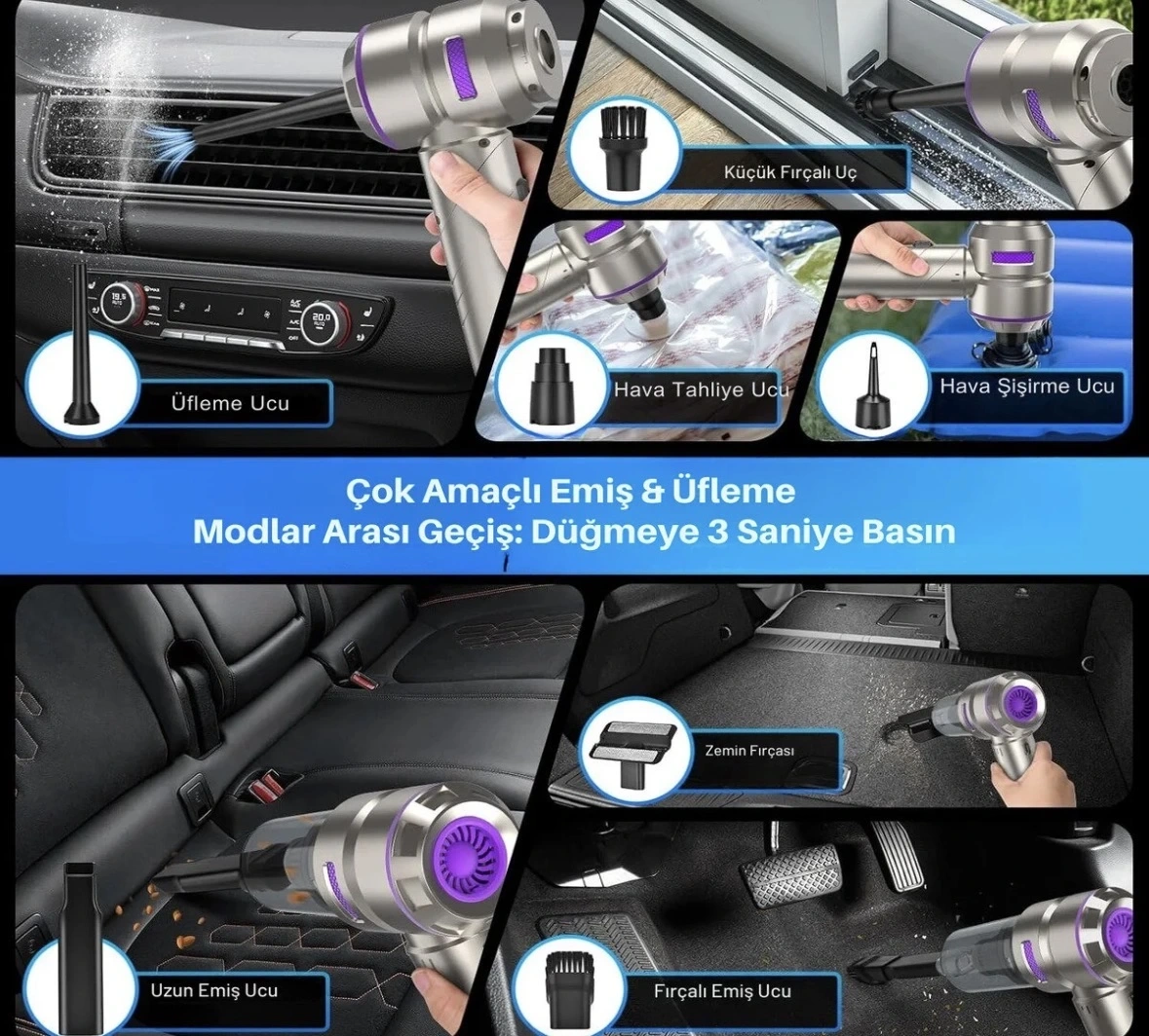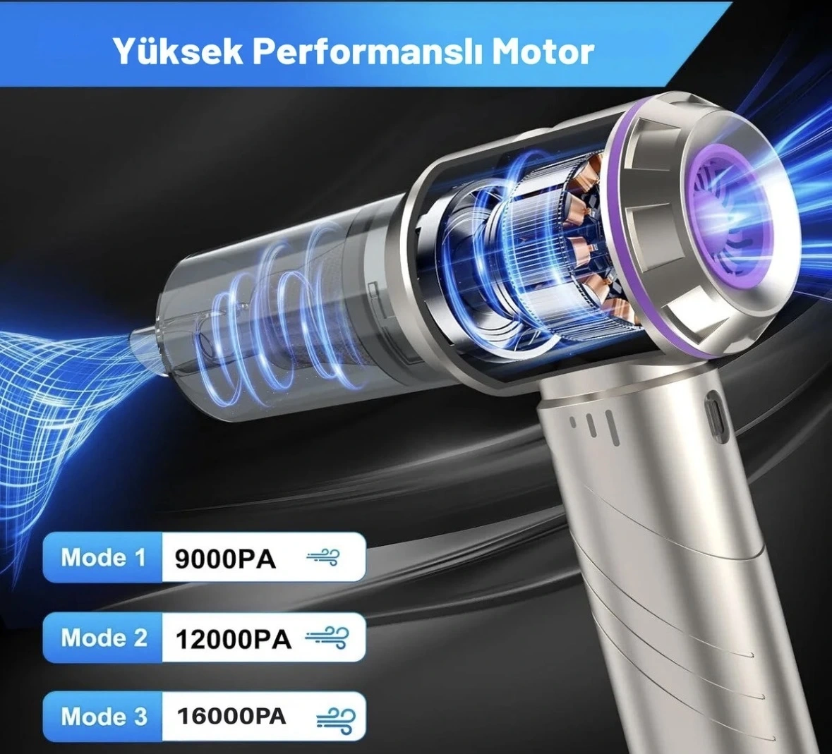 16000Pa’lık yüksek vakum gücüyle evinizdeki ve aracınızdaki toz, kir ve kalıntıları zahmetsizce ortadan kaldırın! Kompakt ve elde taşınabilir tasarımı sayesinde ulaşılması zor köşelere bile kolayca erişin; temizlik artık daha hızlı, daha etkili.
