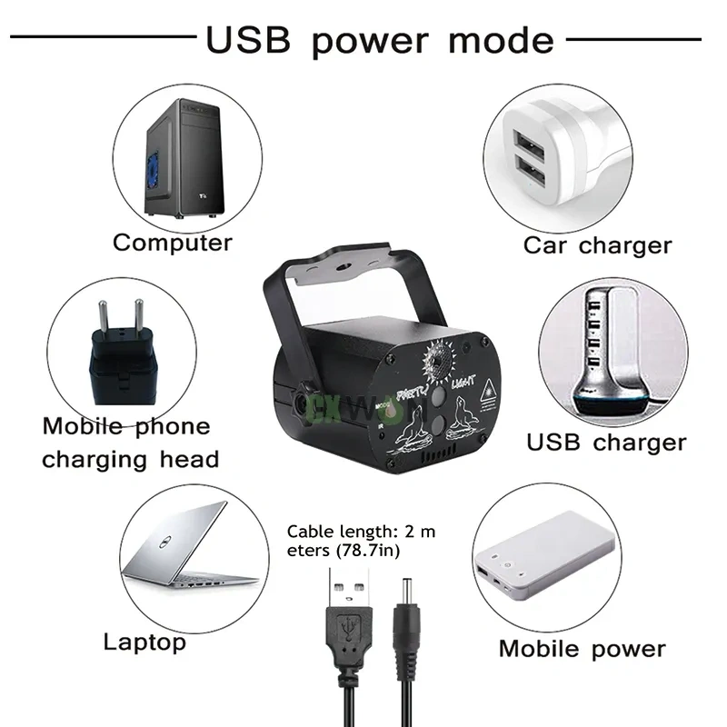 60 benzersiz desen sunan bu mini LED lazer disko ışığı, dinamik renkleri ve hareketli efektleriyle ortamı saniyeler içinde canlı bir dans pistine çevirir.